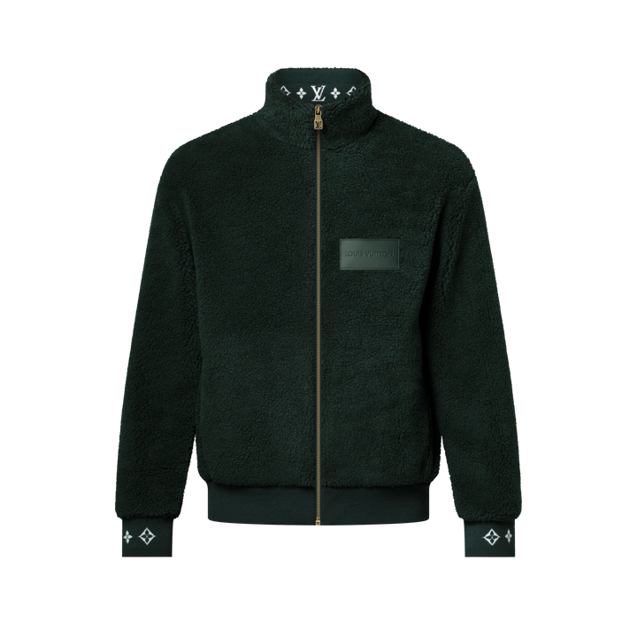 Louis Vuitton Leather Patch Fleece Blouson Dark Green